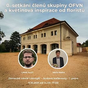 Dne 9.10.2021 se prostorách Zámeckého návrší Litomyšl uskuteční 0. setkání členů skupiny OFVN a rovněž floristická inspirace od Lukáše Kouřila a slovenského floristy Mario Mašky.