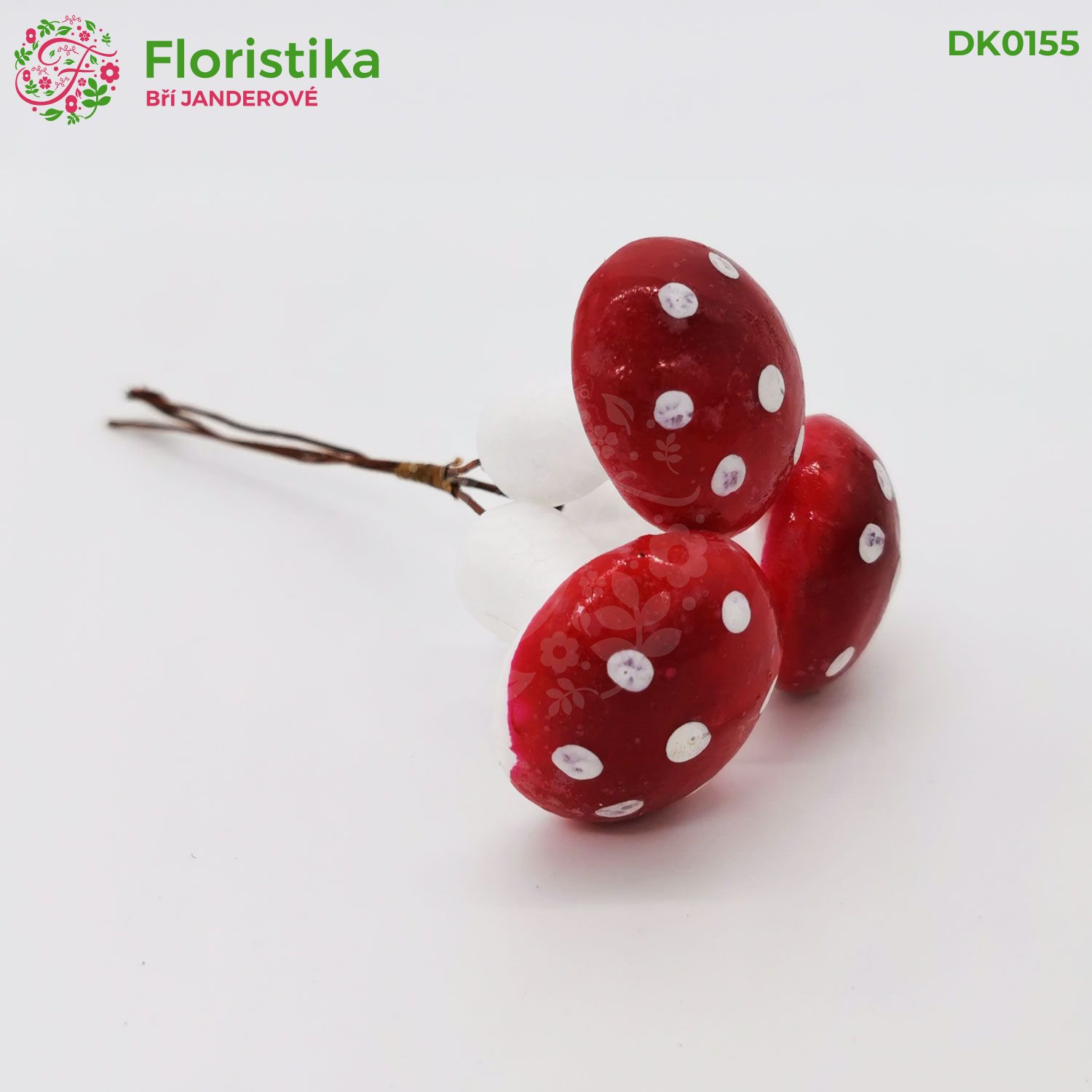 Zeptat se na cokolivUmělá houba muchomůrka na drátku - průměr hlavičky 3 centimetry, délka 3,5 centimetry, balení 3 kusy. Délka drátu na upevnění 9 centimetrů.