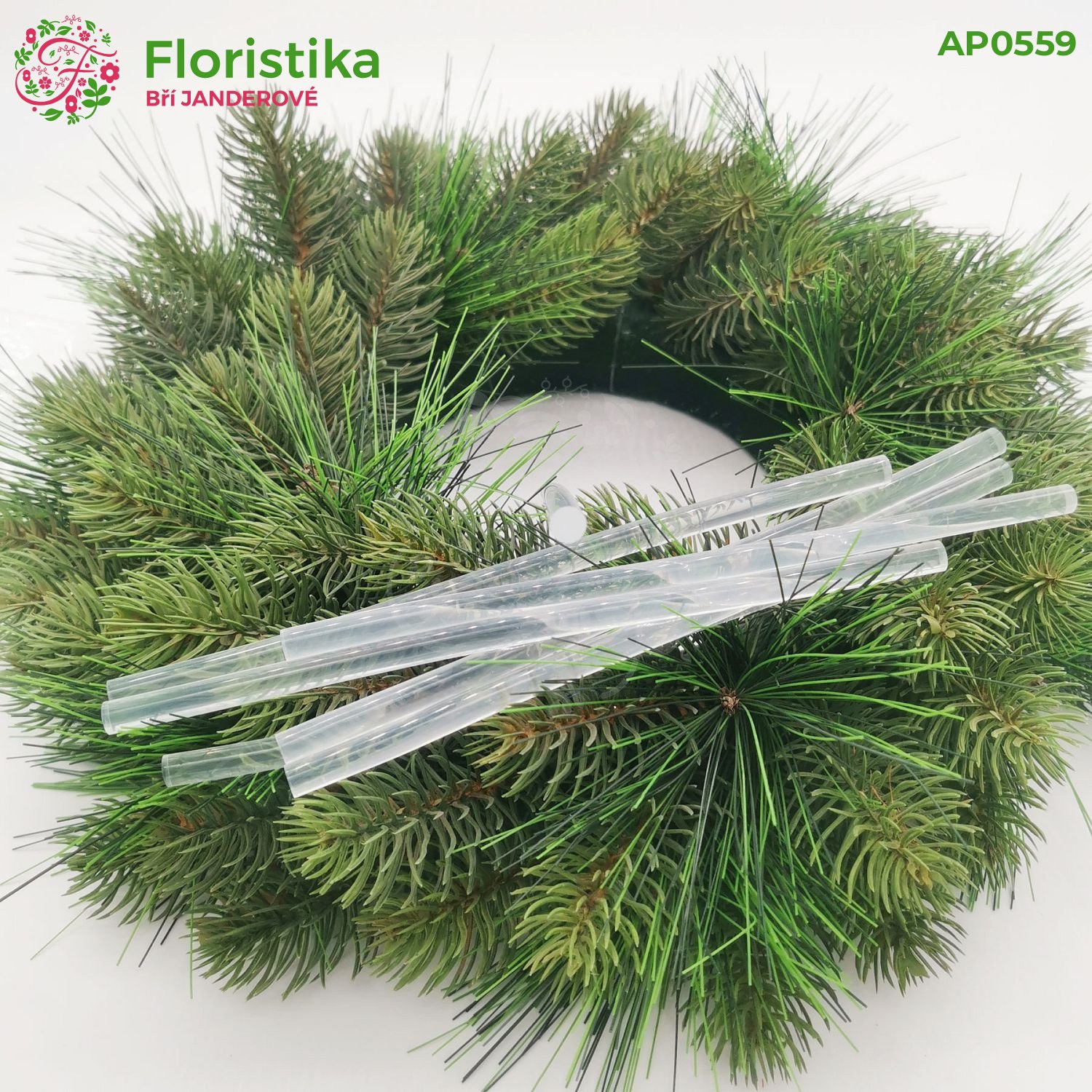 Tavné lepidlo, priemer 8 mm, dĺžka 20 cm. Toto tavné lepidlo je určené pre malé tavné pištole alebo na rezanie do tavnej panvice. Lepidlo je biele priehľadné a má dobrú priľnavosť k mnohým materiálom, ako je drevo, materiály na báze dreva, papier, kartón, textil, sklo, keramika a plasty, napríklad melamín, PS, PVC, PMMA, PC a PU pena. Tavné lepidlo je vynikajúce na lepenie dekorácií alebo pripevňovanie umelých alebo suchých kvetov.