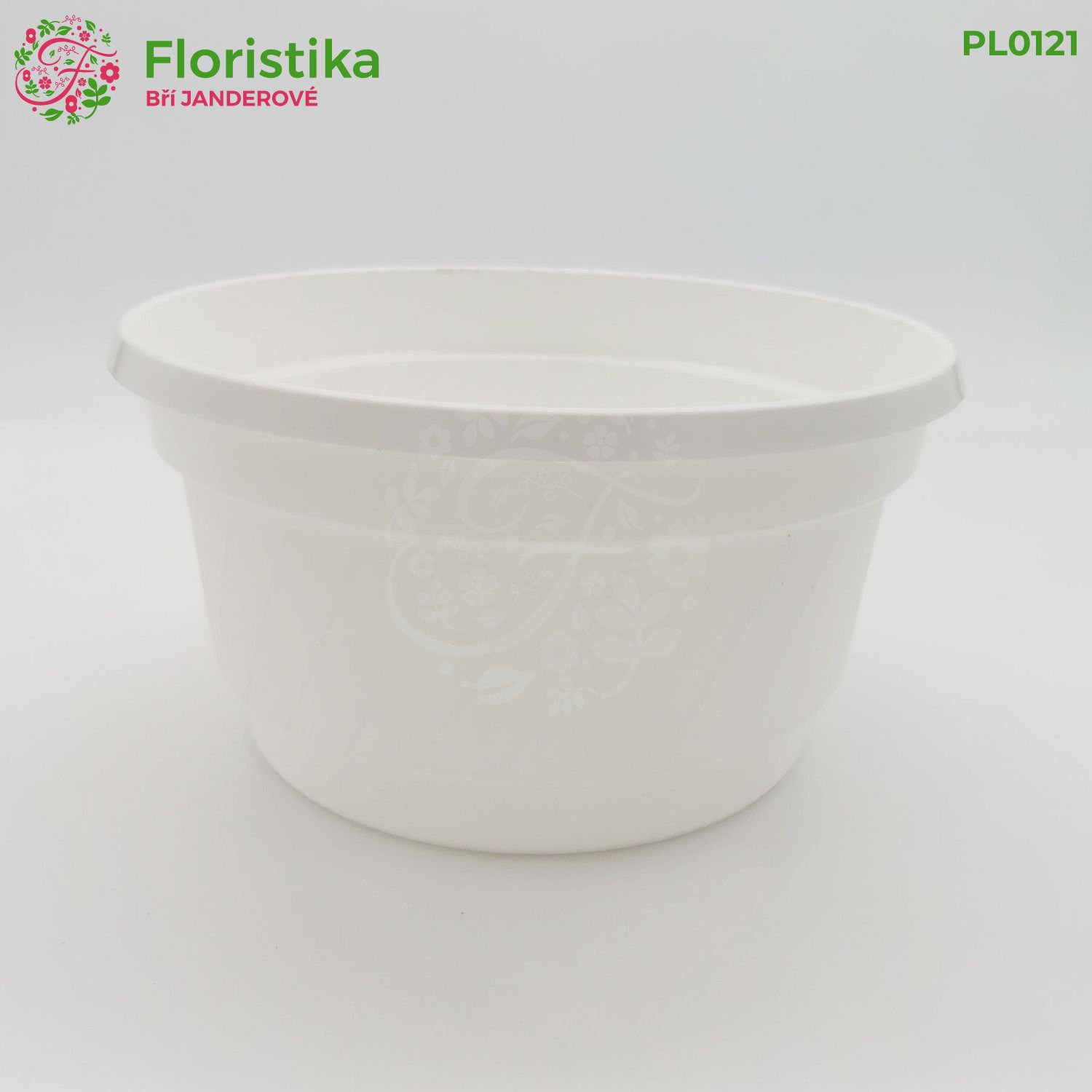 Robustná plastová miska s elegantným vzorom šikmých pruhov v bielej far be na dekorácie, aranžmány alebo ako obal na kvetinu v žardiniére.