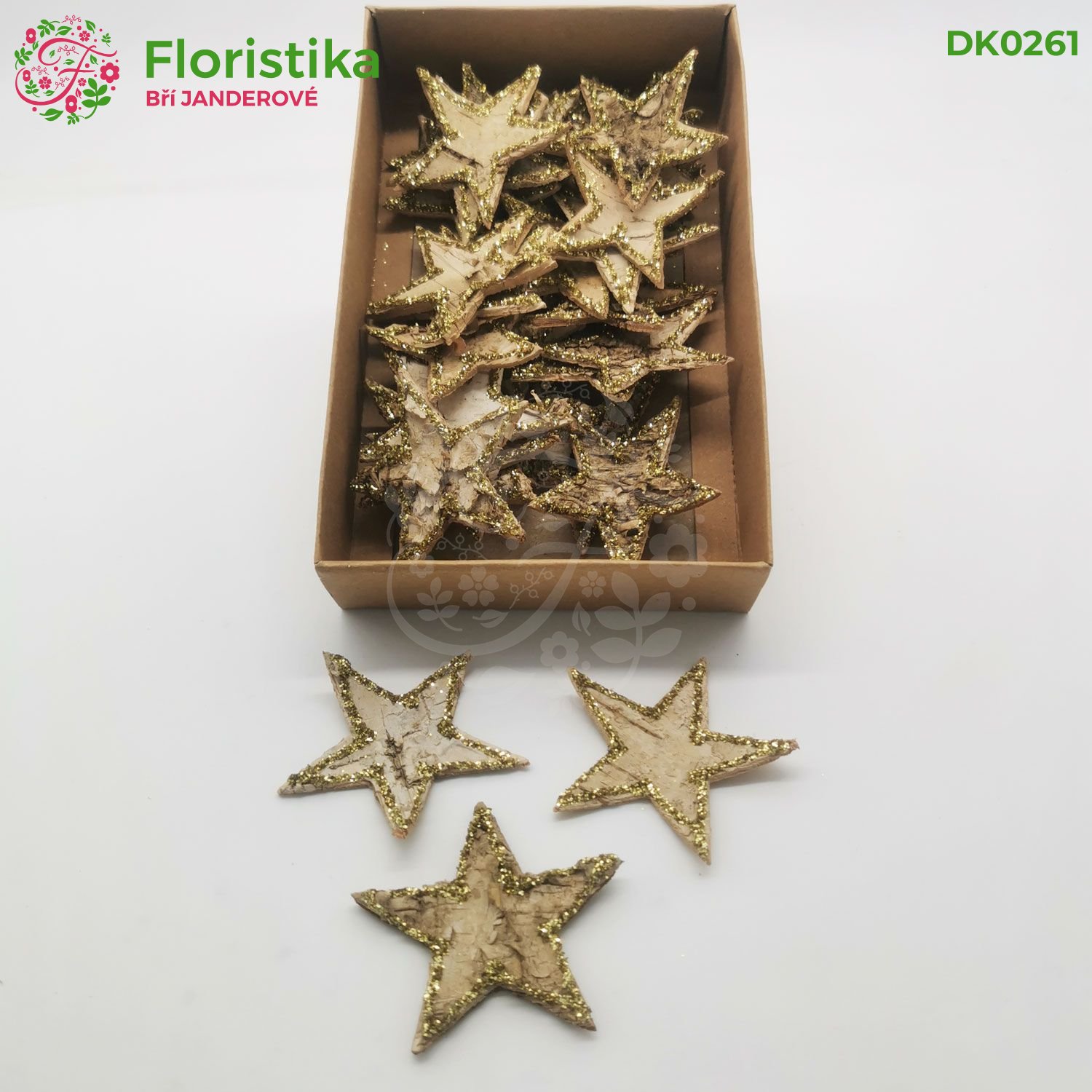Hviezda z brezovej kôry 6,5 cm - hviezda z brezovej kôry so zlatým zdobením na boku, priemer 6,5 cm, balená v škatuli po 30 kusoch.