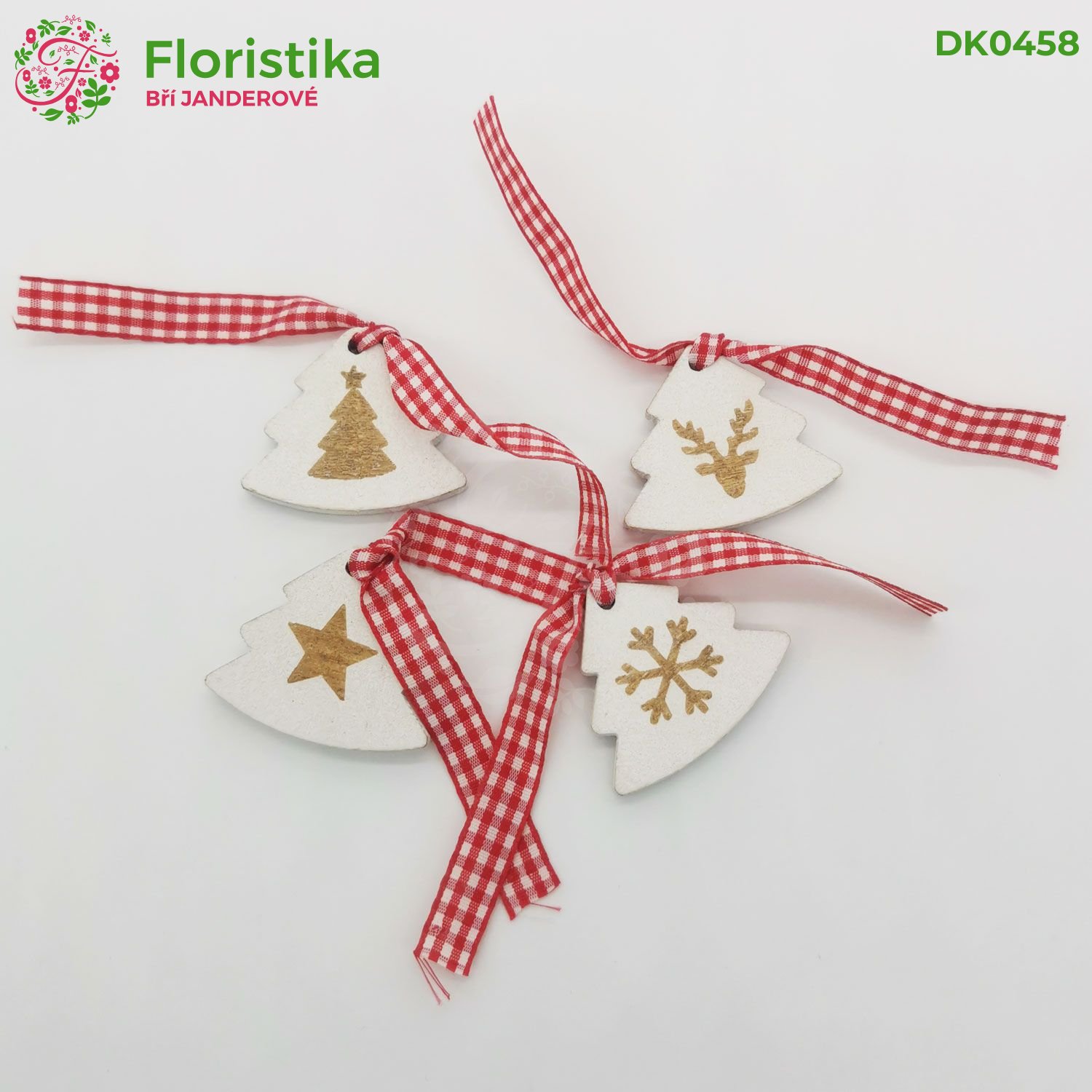 Drevený stromček s potlačou a kockovanou stuhou 4cm/8ks za 3,31 € s DPH Skladom