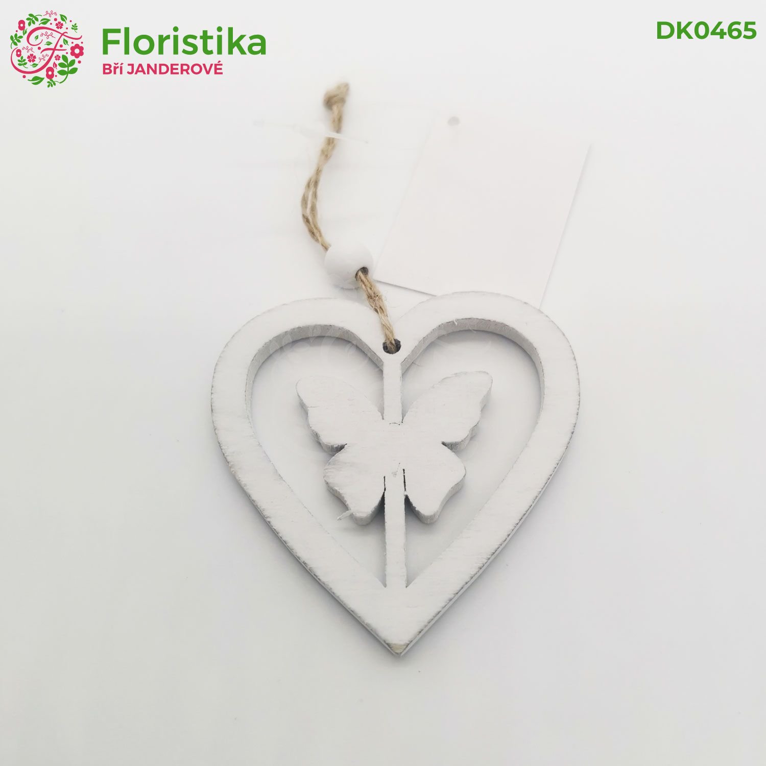 DK0465 Drevené srdce s motýľom na zavesenie 7 cm