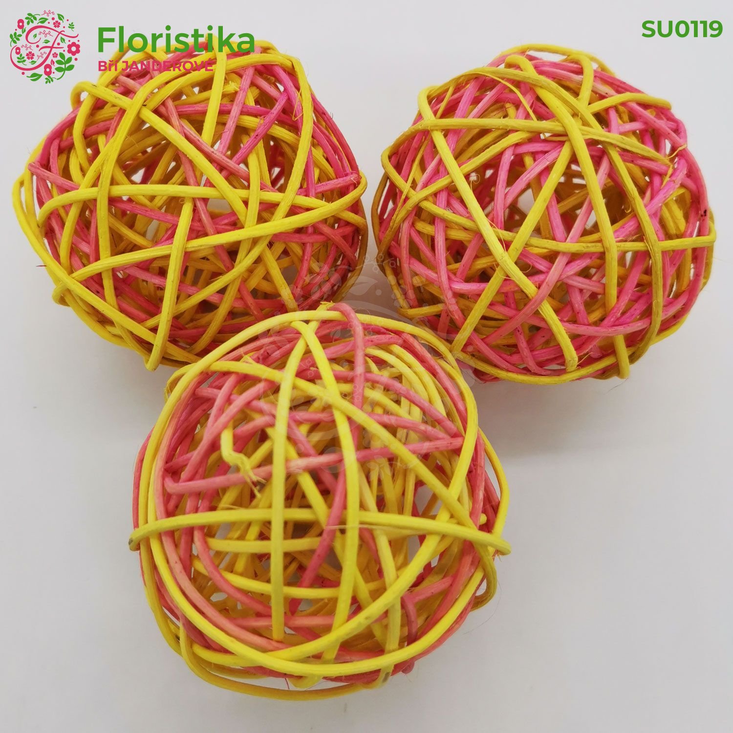 Ratanová guľa 8 cm / 12 kusov - žlto-ružová za 10,25 € s DPH Skladom