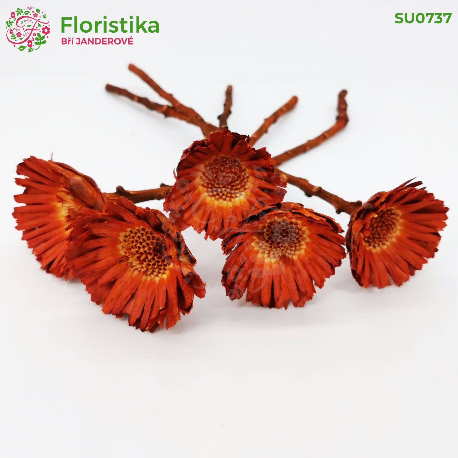 Compacta rosette - efektné farebné oranžové hlavičky na stonke vždyzeleného kríka Protea comapcta z Južnej Afriky. Táto exotická rastlina sa môže pochváliť kvetmi s priemerom 5 až 6 centimetrov na stonke dlhej približne 30 centimetrov. Protea compacta matné hlavičky je ideálnou dekoráciou do interiéru alebo na aranžovanie dekorácií. Balenie obsahuje 20 kusov.
