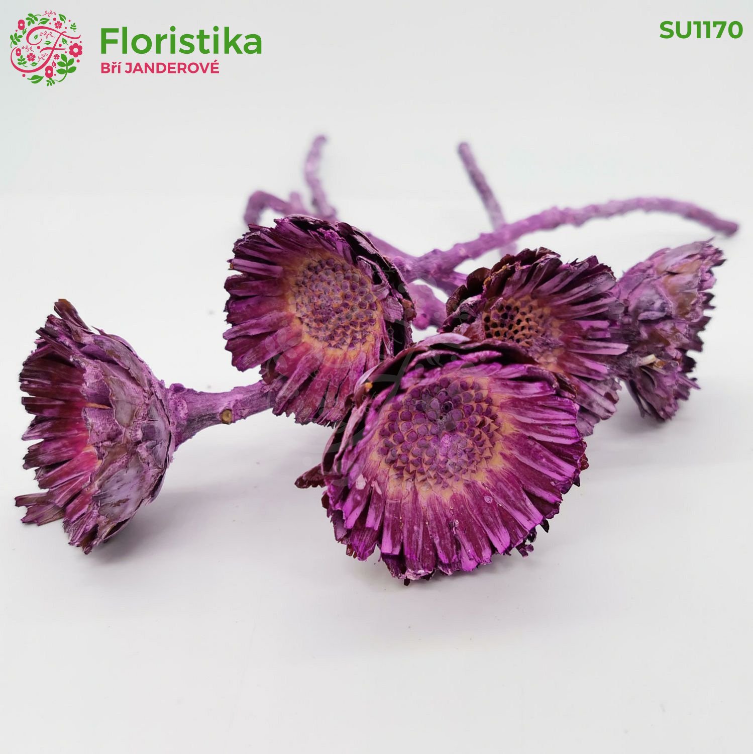 Compacta frosted purple - veľkolepé farebné fialové hlavičky na stonke Protea comapcta, vždyzeleného kríka z Južnej Afriky. Táto exotická rastlina sa môže pochváliť kvetmi s priemerom 5,5 cm na 30 cm dlhej stonke. Protea compacta frosted heads je ideálnou dekoráciou do interiéru alebo na aranžovanie dekorácií. Balenie obsahuje 30 kusov.